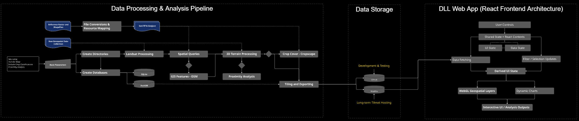 The project grew out of prior work with Landsat data in urban heat island research and subsequent exploration across planning and land-use contexts, where a consistent gap became clear: limited infrastructure for integrating and analyzing spatial data as a unified, time-aware system. DLL addresses this by standardizing inputs, deriving composite metrics, and producing analysis-ready outputs.