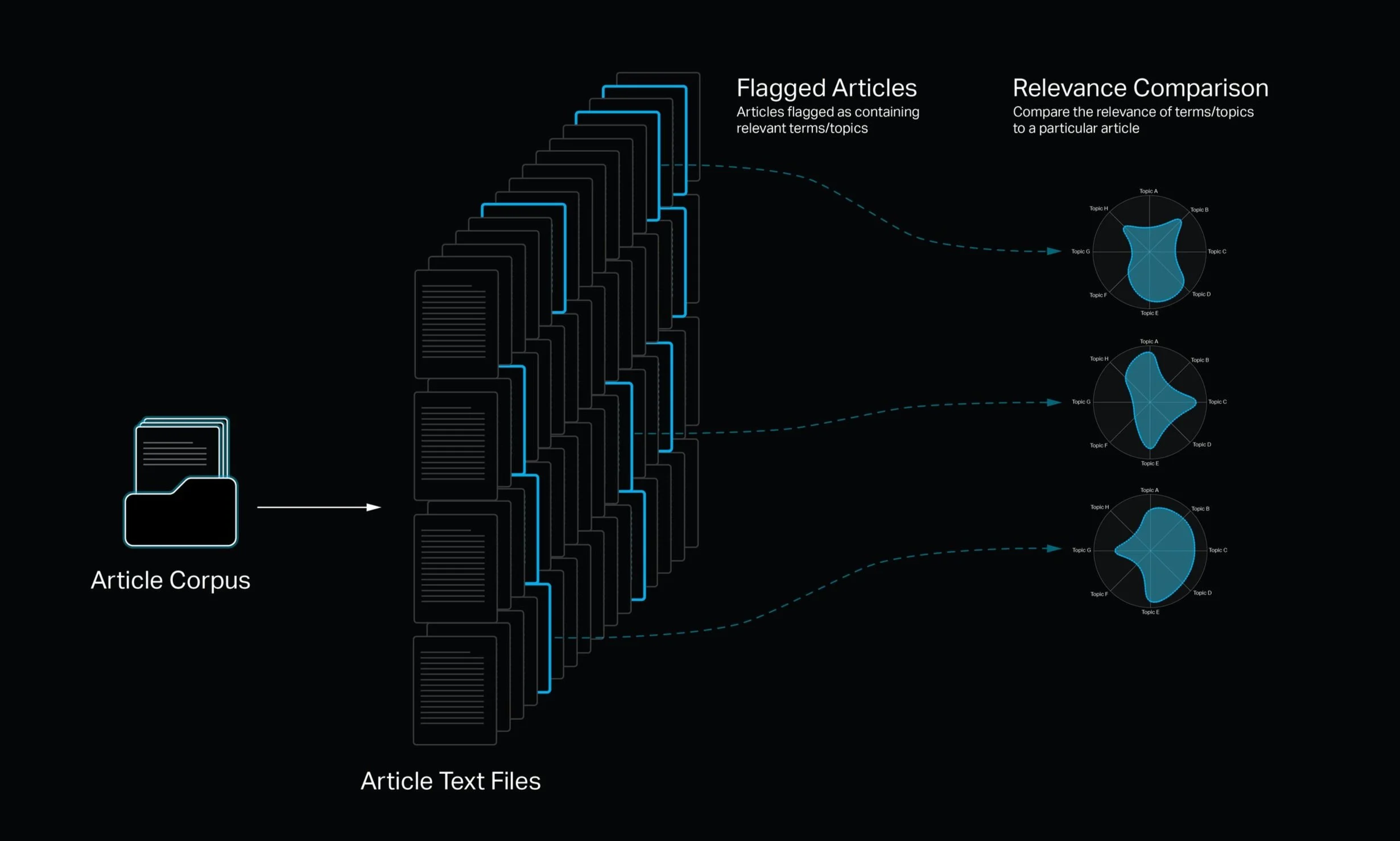 For example, let’s say we want to identify relevant and trending topics across a corpus of 1000 articles. We could read each article in that corpus and manually flag interesting topics, but that process is time-consuming and your brain will undoubtably become fatigued and you will probably miss relevant information. Much of your time may end up being spend reading articles with no or minimally relevant information, so it's simply not an efficient use of time.